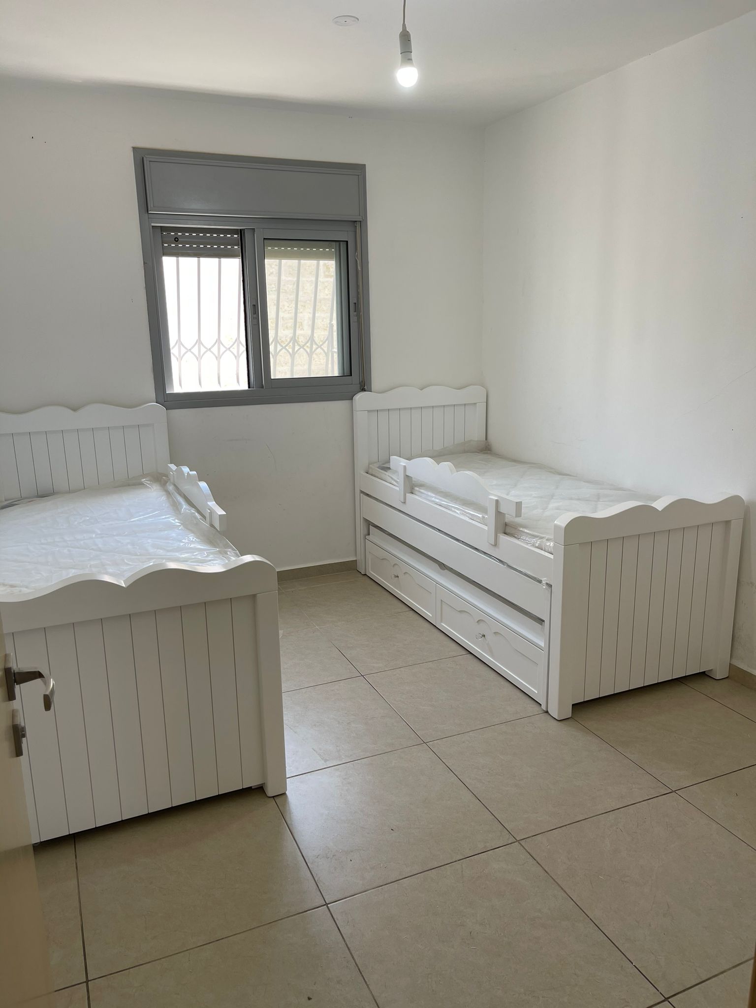 מיטת ילדים משולשת איכותית מעוצבת, עם מיטת חבר נשלפת.